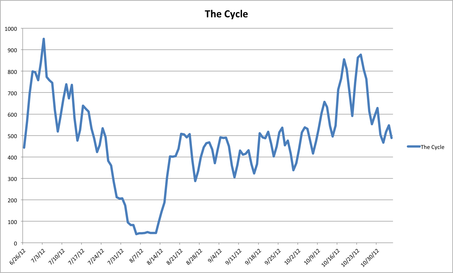 There’s no doubt about it, MSNBC has been on fire on Twitter as we close in on the election — people are talking more and more about MSNBC’s shows. Let’s take a look at how the “Point of View” shows (which start at 3pm with The Cycle and run through Last Word plus Chris Hayes and Melissa Harris-Perry on weekends1) have been doing4: